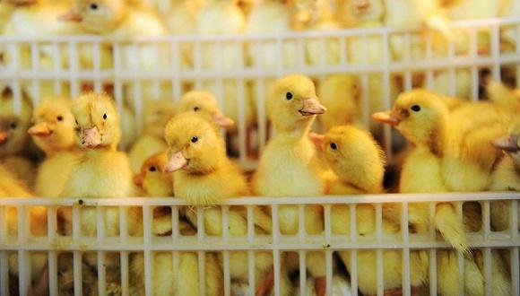2012年9月22日,山东德州庆云县中澳集团养殖公司正在孵出的小鸭子。 图片来源:视觉中国