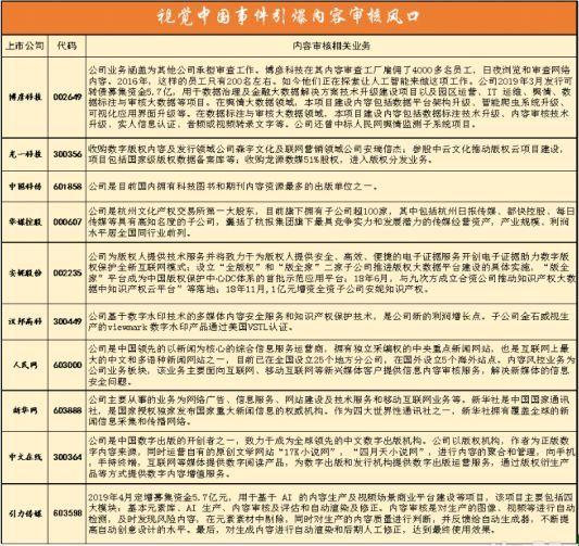 视觉中国股价倒下,一堆公司的股价崛起。这些公司都有一个共同的业务,那就是“内容审核”。 周五(12日)最先涨板的是博彦科技,接着是光一科技、中国科传和华媒控股,其他相关个股也有不错表现。