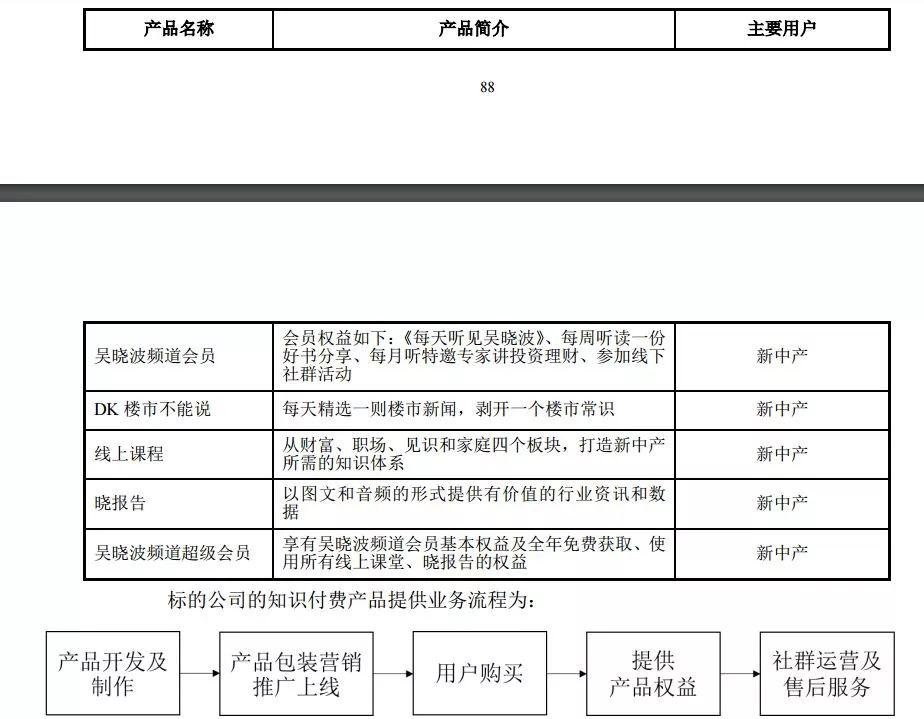 知识付费业务主要通过“吴晓波频道”的微信公众号以及喜马拉雅、咪咕等移 动端载体开展,标的公司已推出的知识付费产品包括文字、音频、视频等多种形式, 用户可以选择单次购买任一线上知识产品使用、体验,亦可以选择成为年费会员